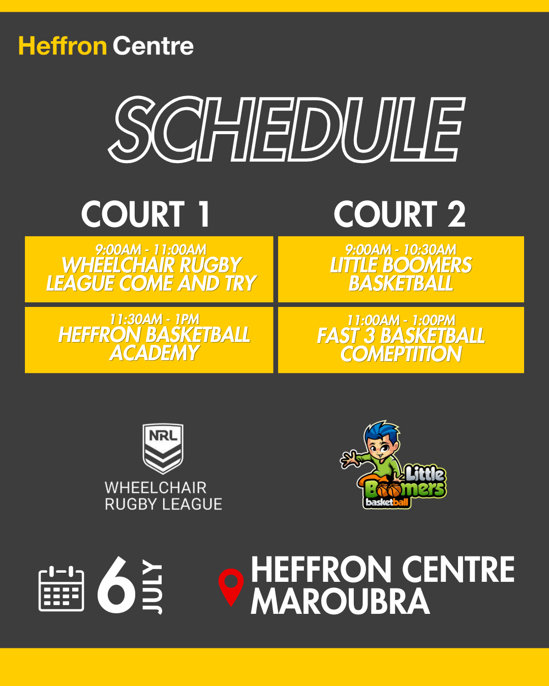 Get ready for a fun-filled day of sport, energy, and community at the Heffron Centre Open Day! Whether you’re a player, parent, or just looking to try something new — we’ve got something for everyone: